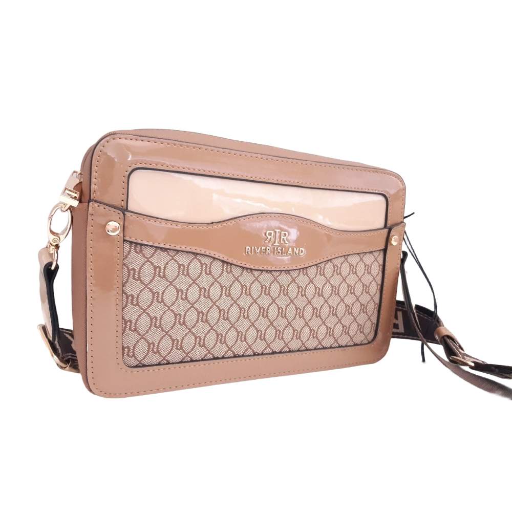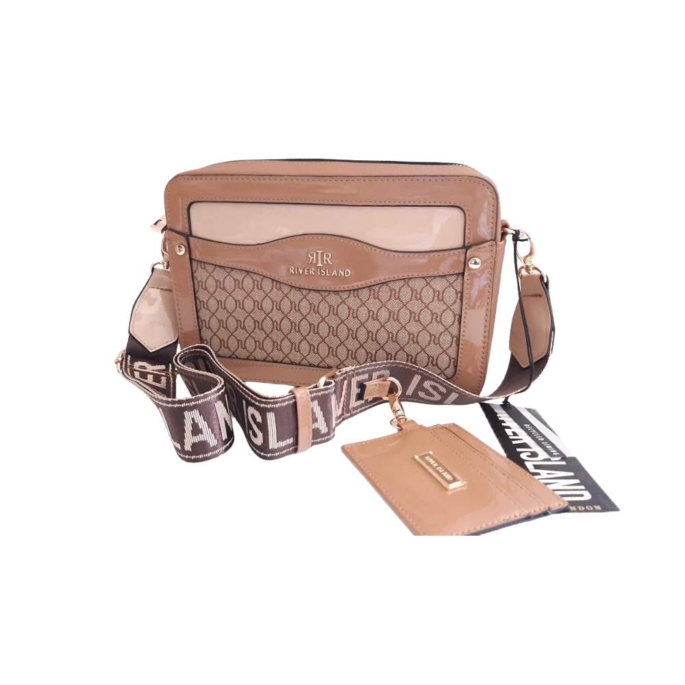RIVER ISLAND Brown RI Monogram Boxy Crossbody Bag with Card Holder