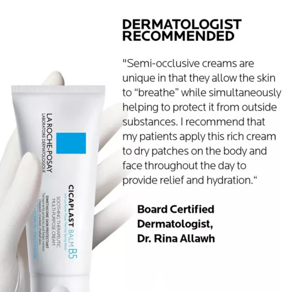 La Roche-Posay Cicaplast Balm B5 Soothing Therapeutic Multi-Purpose Cream is suitable for adults, children, and babies as young as one week old. This multi-purpose soothing cream is great for dry skin irritations on your body, hands, and face. It helps protect and relieve cracked, chapped, and chafed skin. It also soothes visibly irritated areas associated with dry skin.