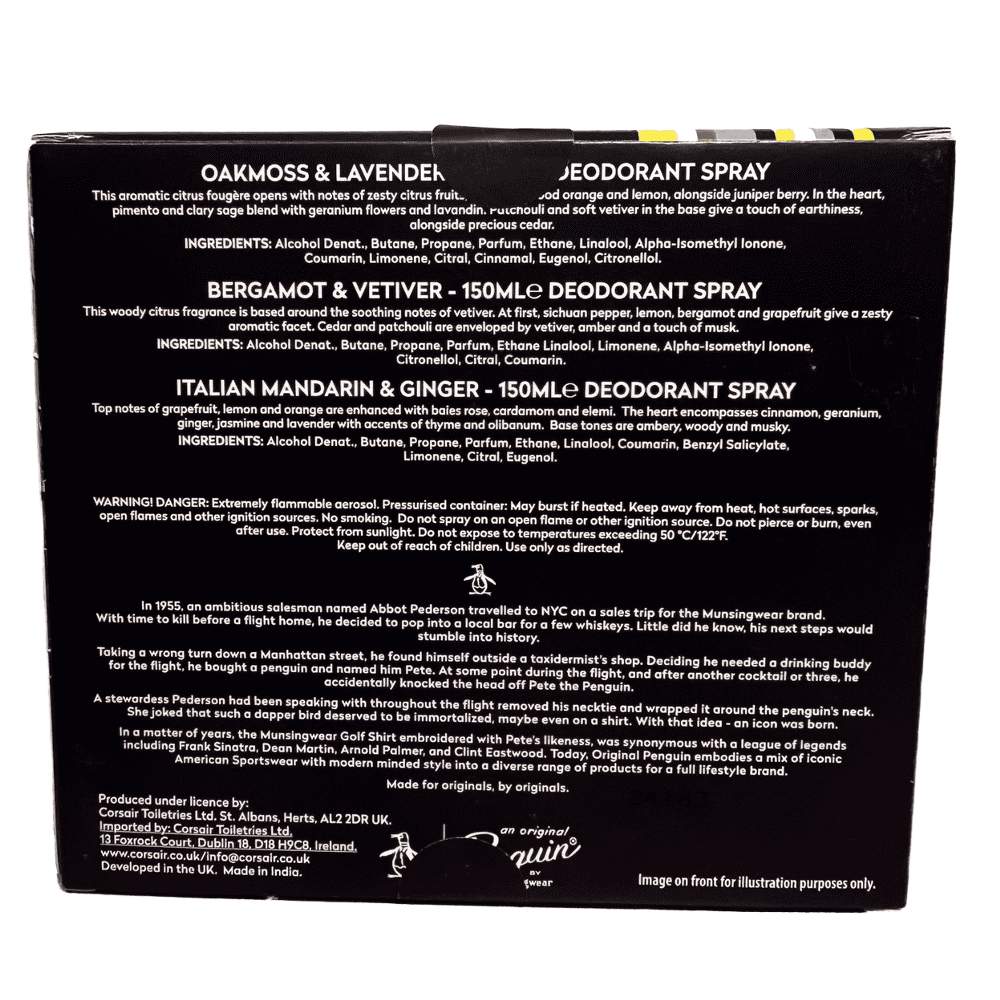 This iconic Original Penguin 3 x 150ml Body Spray Set makes a perfect gift. With 3 distinctive scents that are designed to keep you smelling great all day long this set is an ideal gift for him.