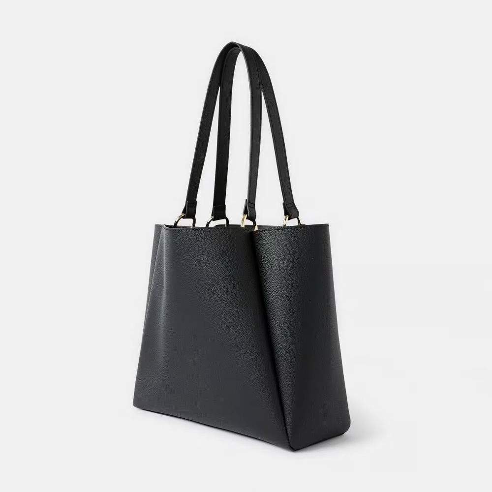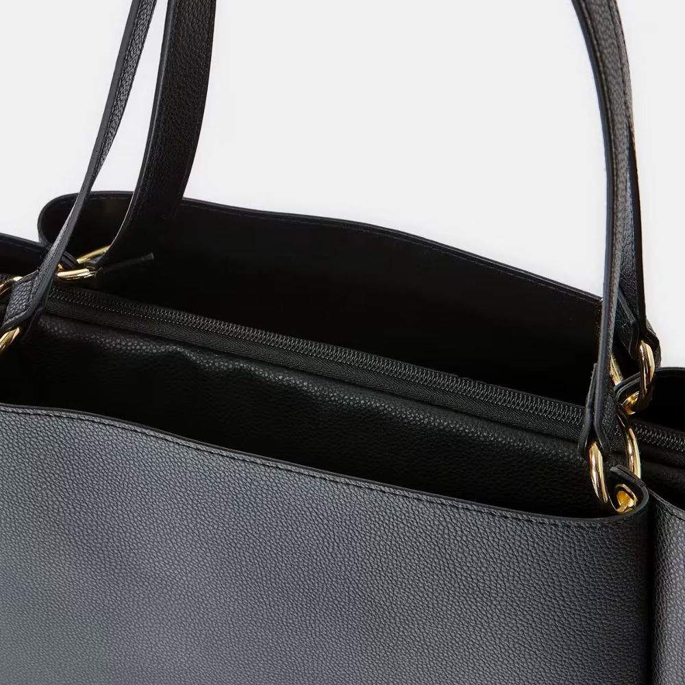 This sleek black tote bag pairs effortlessly with any outfit, making it an essential accessory for everyday use.
