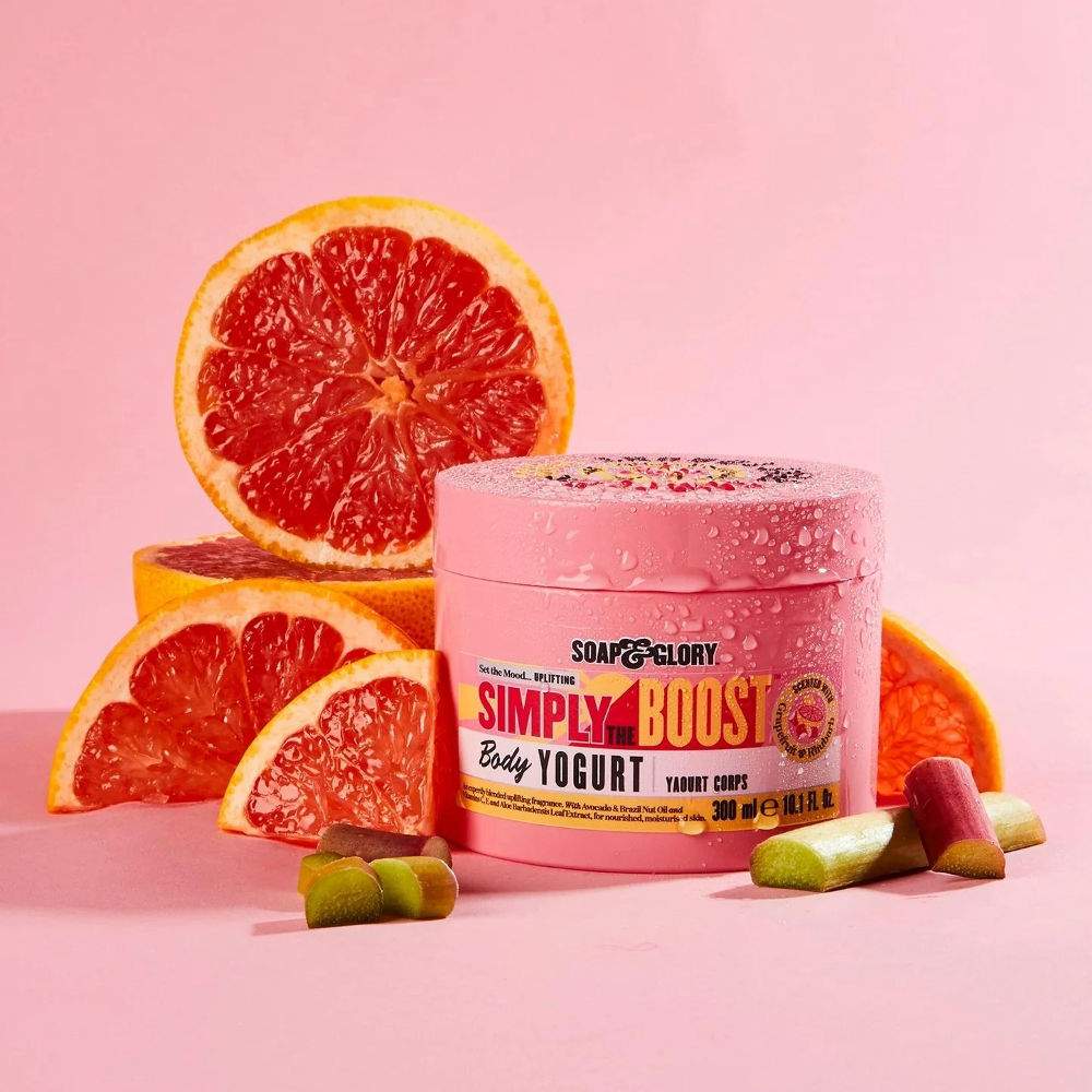 Introducing our light-as-air, yet oh-so-nourishing body moisturiser… Sounds like the boost of both worlds doesn’t it? Well, lucky for you, our luxuriously lightweight Simply The Boost Body Yogurt does just that. With a fabulously fragranced formula, it locks in moisture from top-to-toe, this smooth mover is dripping with a decadent duo of avocado and brazil nut oils, plus vitamins C and E to intensively nourish without leaving behind any stickiness – just silky soft, sublimely smooth and heavenly hydrated skin. But wait! Its beautifying benefits don’t stop there. It’s also fragranced with our magnificently mood-boosting Uplifting scent-sation, expertly designed to enhance happiness, with notes of grapefruit and rhubarb.